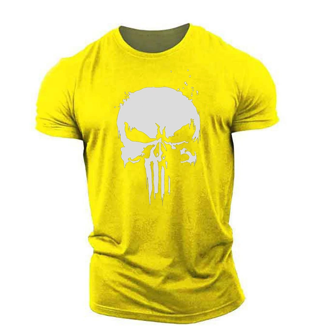Футболка мужская эластичная с принтом черепа, дышащая, легкая