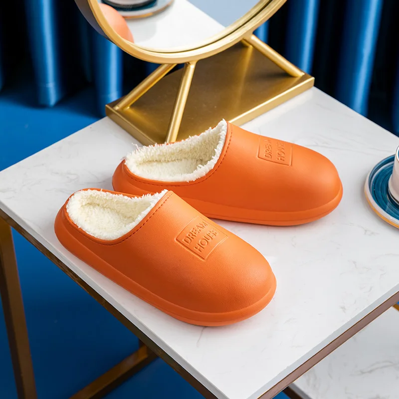 Водонепроницаемые Нескользящие домашние тапочки для женщин, зимние теплые домашние тапочки для мужчин и пар, домашние Нескользящие мягкие плюшевые тапочки с эффектом памяти