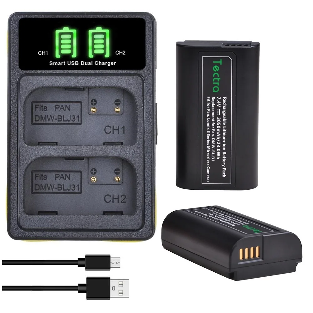 Tectra 3050 мА ч DMW-BLJ31 сменный аккумулятор и двойное зарядное устройство, для Panasonic Lumix DC-S1, DC-S1R, зеркальные камеры