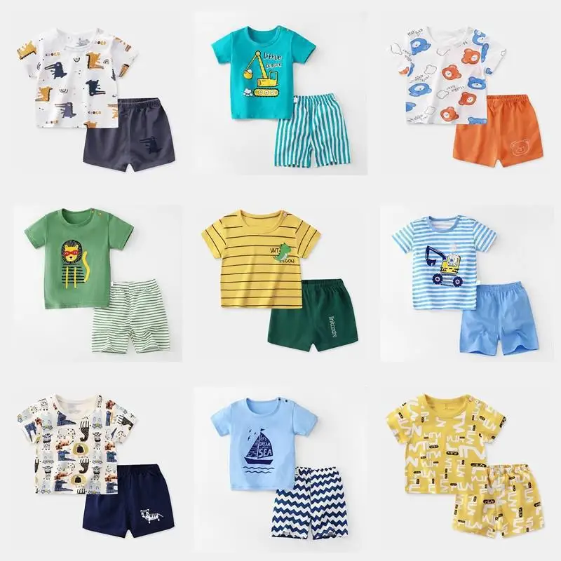 Детский хлопковый комплект в полоску, с коротким рукавом