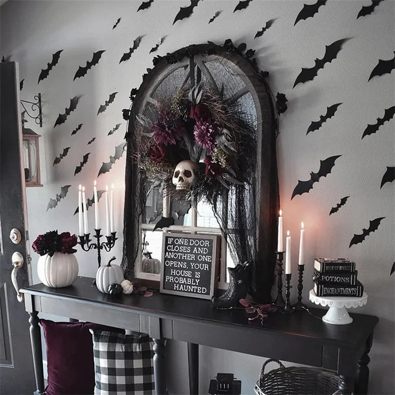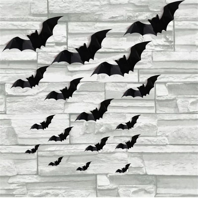 1224 шт. на Хэллоуин-вечеринку, страшный декорации Decos наклейка на стене на Хэллоуин Декор для вечеринки DIY 3D черная ПВХ летучая мышь бар комната украшение на Хэллоуин