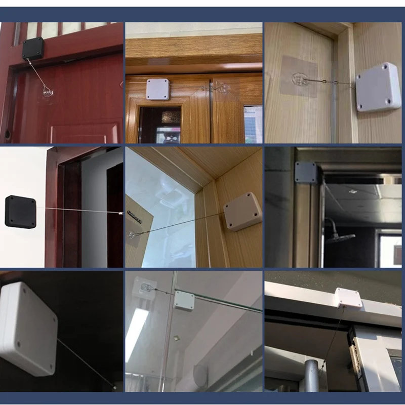 Жилой коммерческий бездымный автоматический датчик для дверцы ближе анти-Пробивной Авто Дверной доводчик автоматически закрывается шнуркомХарактеристика:Автоматически закрывает все двери:Подходит для дверей или дверей с более сильной силой закрытия. Двери, которые открываются слева и справа, деревянные и металлические двери, жилые и коммерческие двери, внешние/внутренние доводчики, пожарные двери. 50000 тесты и 800G тяга:Высококачественная стальная проволочная веревка прошла 50000 раз испытаний на растяжение и тест на отскок с сильной тягой 800 г, с сильной силой растяжения. Простота в использовании: без перфорацииАвтоматический датчик для дверцы, установка клея без отверстий, хорошая прочность, не повреждает стену, легкая установка, высокая термостойкость. Прочный:Антиокислительный, антикоррозийный, устойчивый, износостойкий, устойчивый к атмосферным воздействиям, гидравлика, безопасное отключение устройства. Обратите внимание:Дверные доводчики не подходят для дверей с ковром или слишком большим трением. Технические характеристикиМатериал: АБС-пластикПровод Длина: 1,2 метровДиаметр провода: 1,2 ммТяга: 500 г/800 г/1000 гЦвета: белый/черный Посылка включает в себя:1 шт. × Автоматический Дверной доводчик