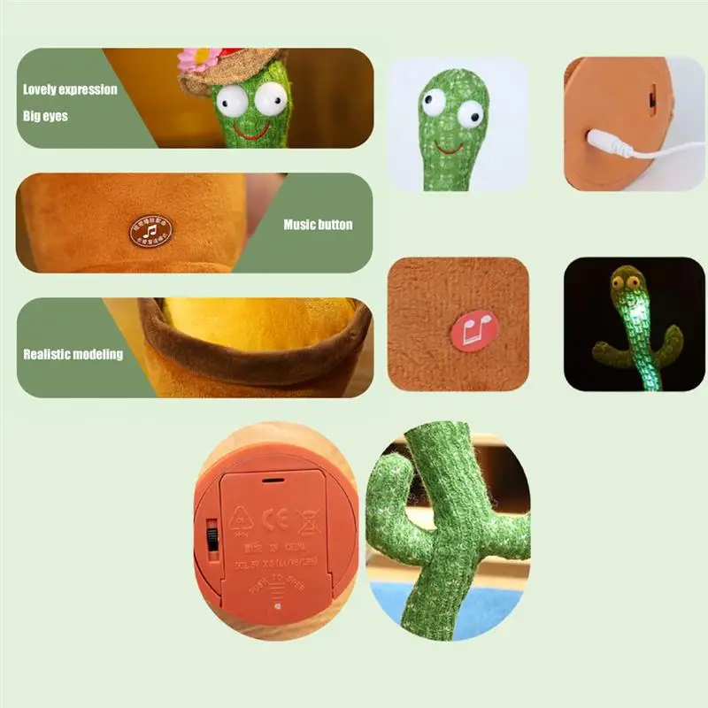 1.Танцующий кактус 120 английские песни + Освещение + запись, чтобы научиться говорить (перезаряжаемый)
