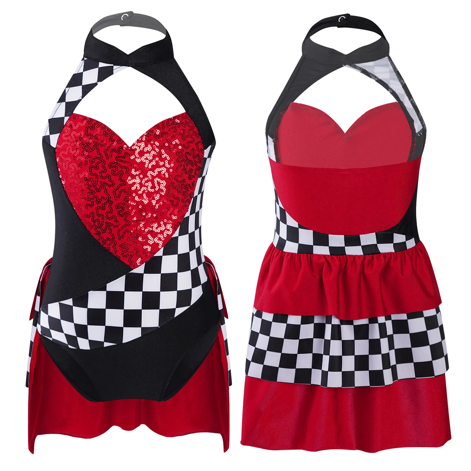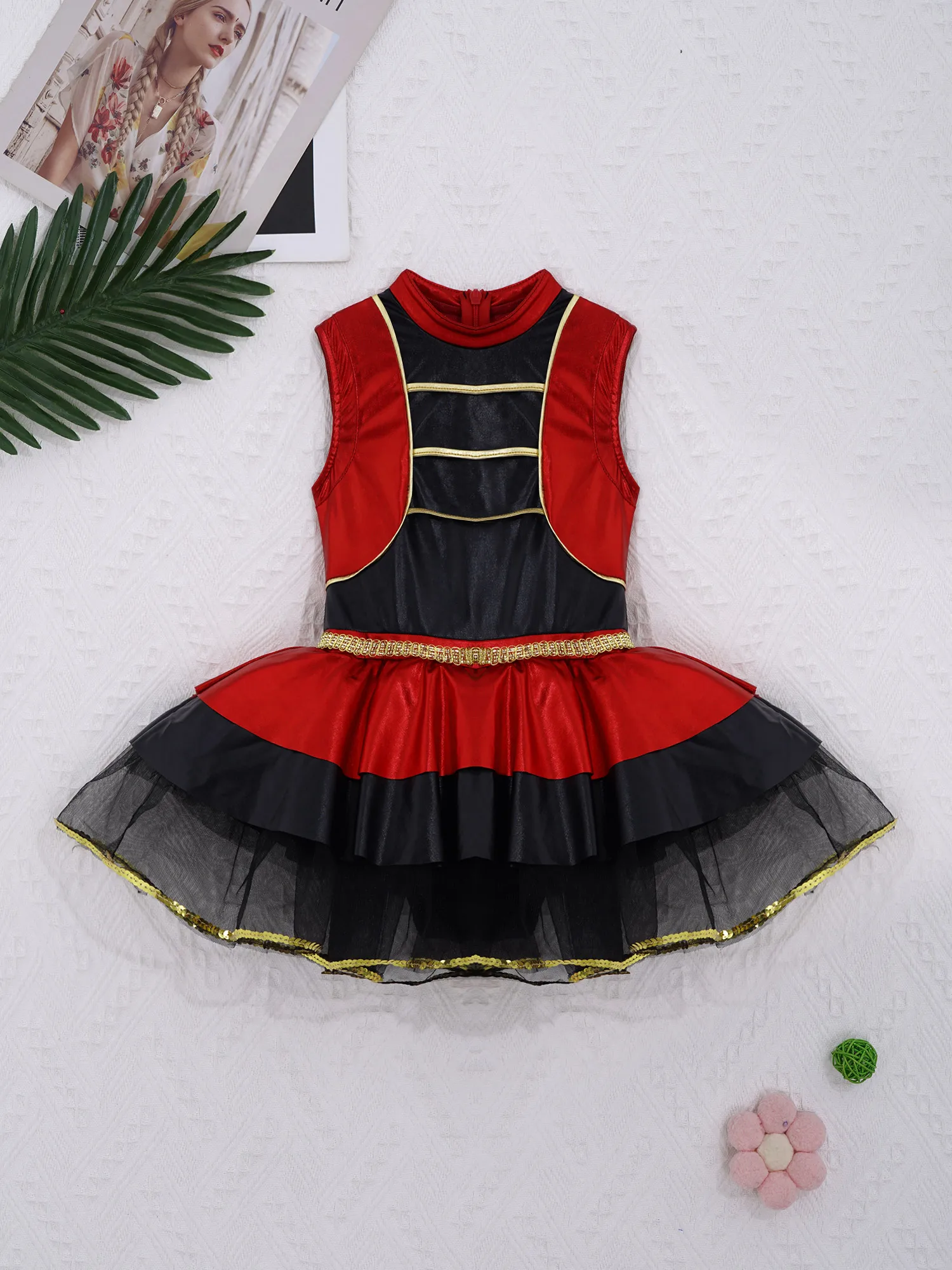 Балетное платье-пачка с блестками, детский блестящий красный Рождественский костюм для девочек, праздвечерние чное сценическое танцевальное платье без рукавов, симпатичный гимнастический купальник