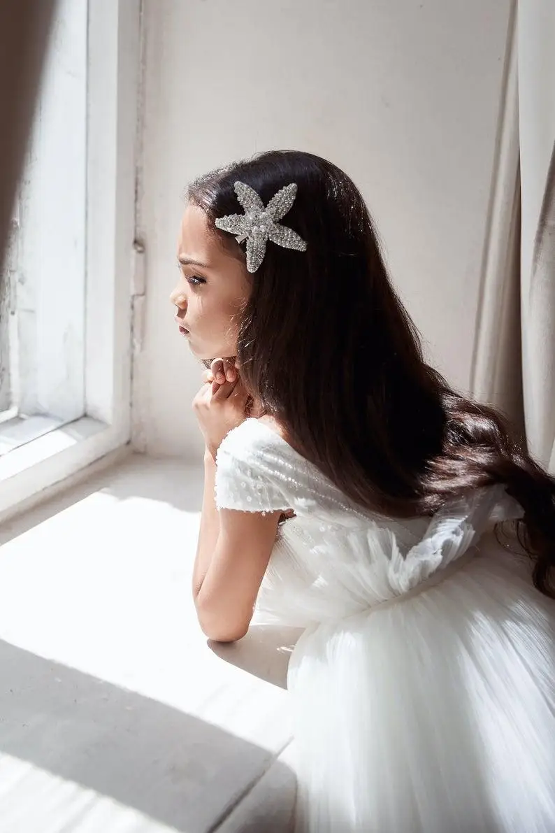2021 белое платье с цветочным принтом для девочек, фатиновое Платье До Колена с коротким рукавом для девочек, пышные платья с бисером и складками, Детская официальная вечеринка
