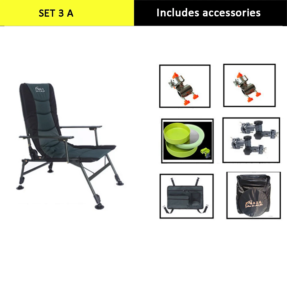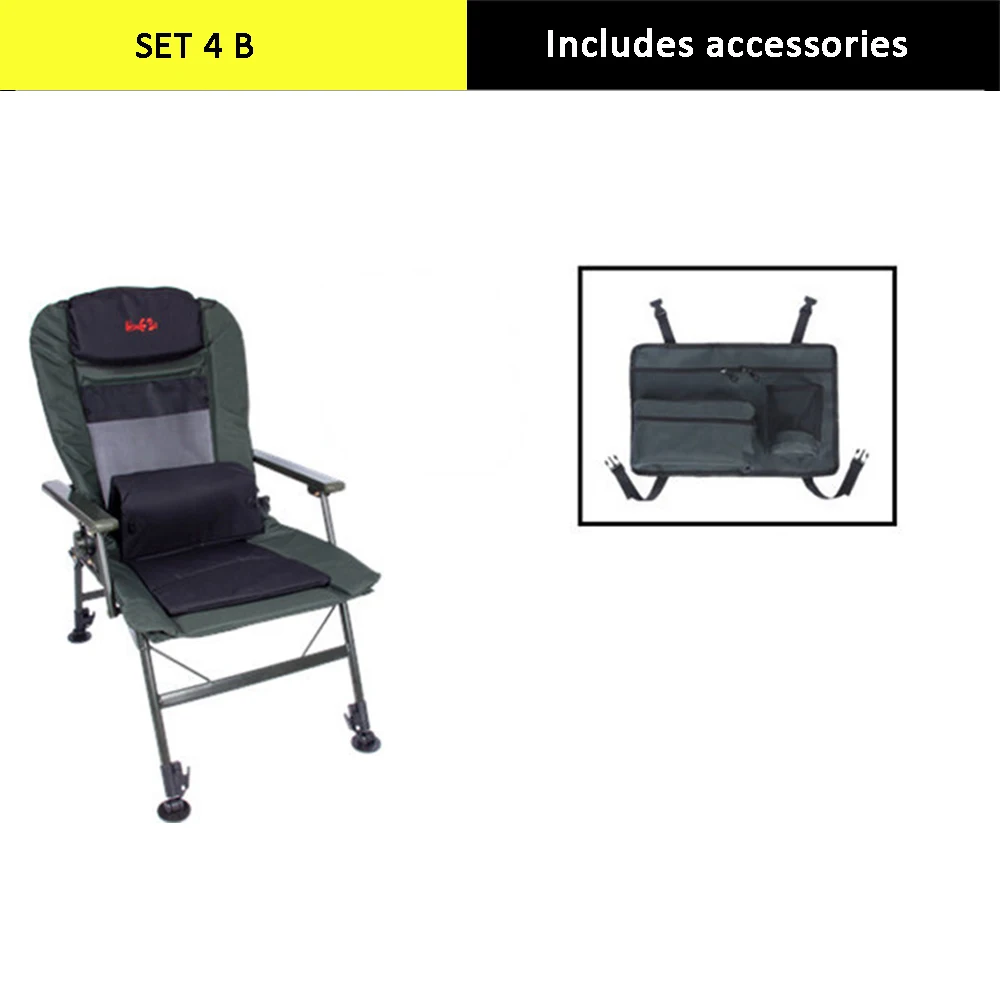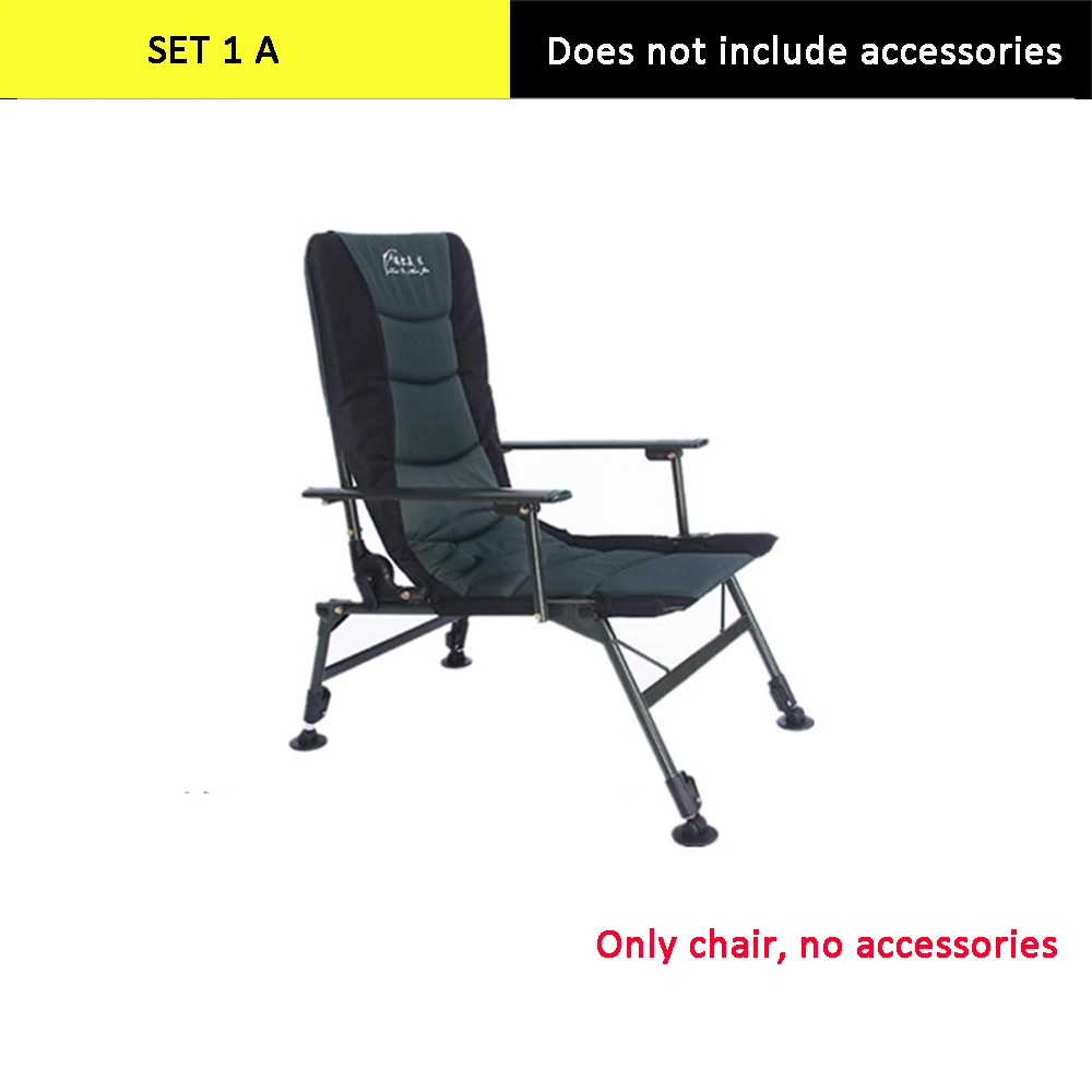 Описание:Материал: железоРасширенный размер: как показано на рисункеРазмер в сложенном виде: как показано на рисунке1. Подходит для всех видов местности2,4 передач можно регулировать.3. Можно сесть, лечь4. Прижмите подъемную универсальную пластину для ног5. Съемная подушка доступна для всех сезонов6.3D оригинальная Экологичная подушка для шеи7. Съемная подушка доступна для всех сезонов8. Выдерживает нагрузку> 150 кгОсобенности:1. Съемная губчатая Подушка, освежает весной и летом, удобна осенью и зимой, доступна в четыре сезона, удобнее лежать2. Удобный подголовник из губки, Подушка с высокой упругостью3. Сумка для хранения инструментов, можно разместить аксессуары и инструменты для рыболовных снастей4. Эргономичный подлокотник, решает усталость рук/легкую рыбалку