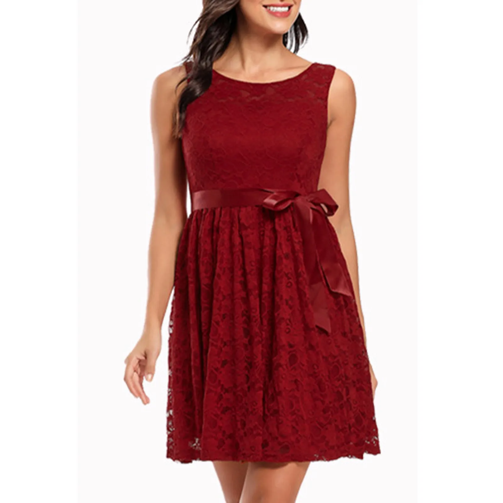 Женское кружевное платье с асимметричным подолом, элегантное однотонное вечерние без рукавов с круглым вырезом, # G3