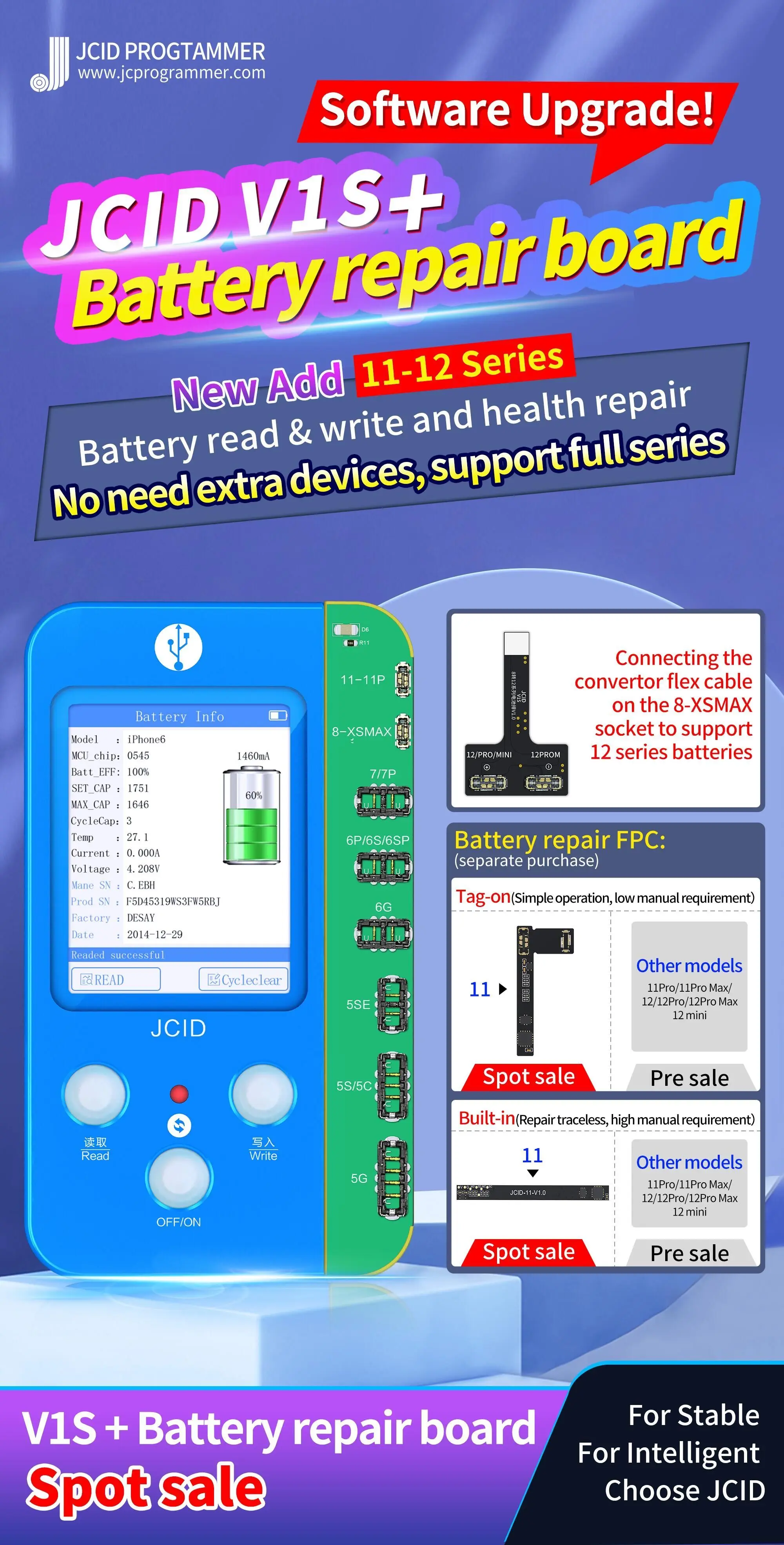 3. Интегрированный и стабильный: это решение заключается в подключении третьего-вечерние гибкого кабеля на оригинальной аккумуляторной плате и изменении данных через PRO1000S или V1S.