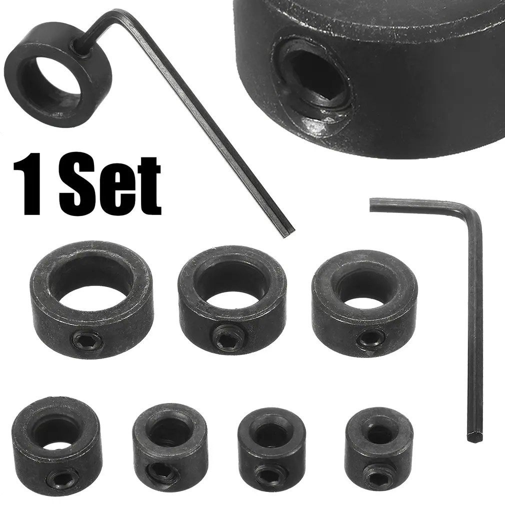 Сверло из углеродистой стали 7 шт./компл. прочные глубины Стопорные ошейники кольцевые дюбеля + Набор шестигранных ключей для деревообработки сверления