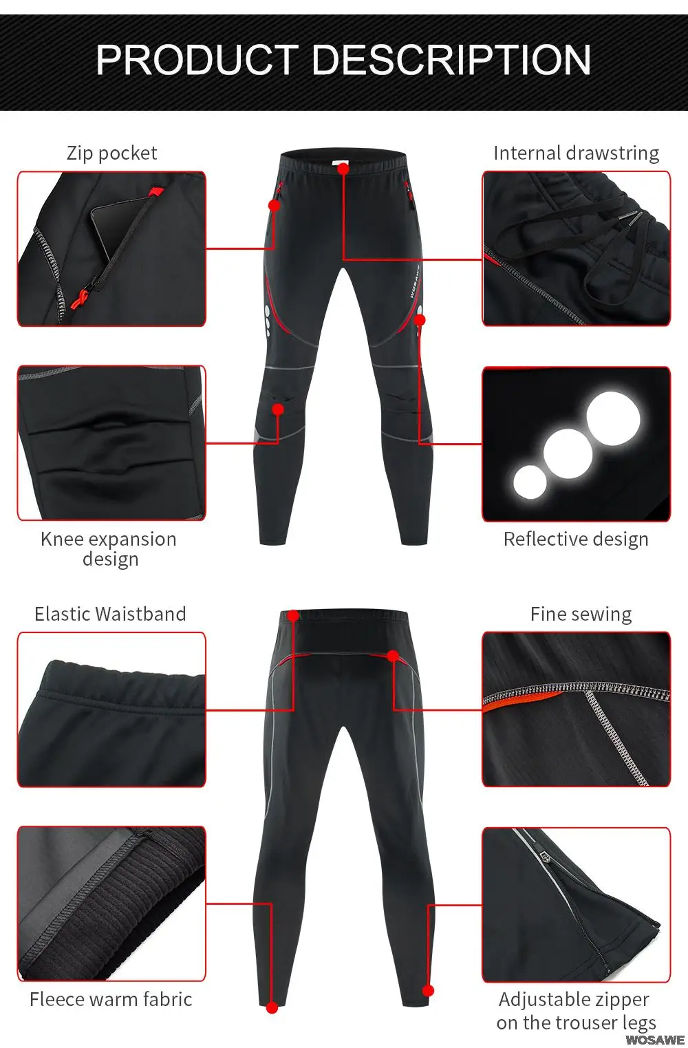 Ветрозащитные мужские велосипедные брюки WOSAWE, зимние водонепроницаемые теплые брюки с флисовой подкладкой для горного велосипеда, велоспорта, рыбалки, фитнеса