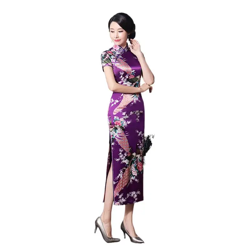 Фиолетовое китайское женское длинное платье, пикантное элегантное Ц...