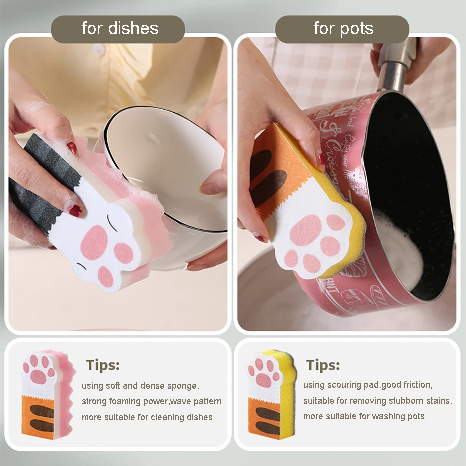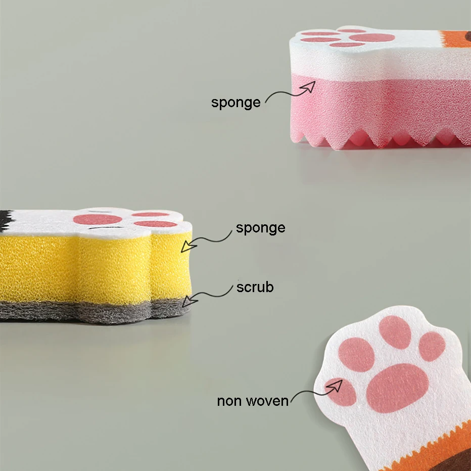 3 шт., скребок-губка для мытья посуды, в форме кошачьей лапы