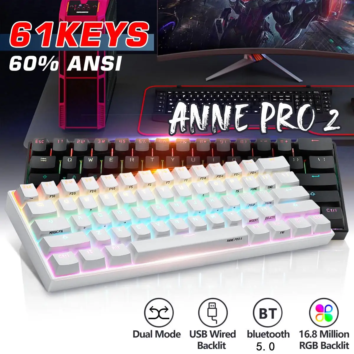 Игровая механическая мини-клавиатура Anne Pro 2 NKRO bluetooth 5.0 Type-C RGB 60%, Gateron Kailh, красная, коричневая, синяя, желтая, переключаемая клавиатура
