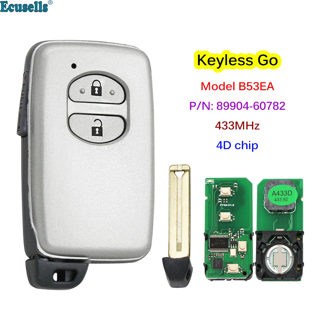 2-кнопочный БЕСКЛЮЧЕВОЙ ключ Go Smart Key ASK 433 МГц 4D-67 Чип для Toyota Land Cruiser 2007-2016 B53EA P1 98 PN: 89904-60782 плата A433