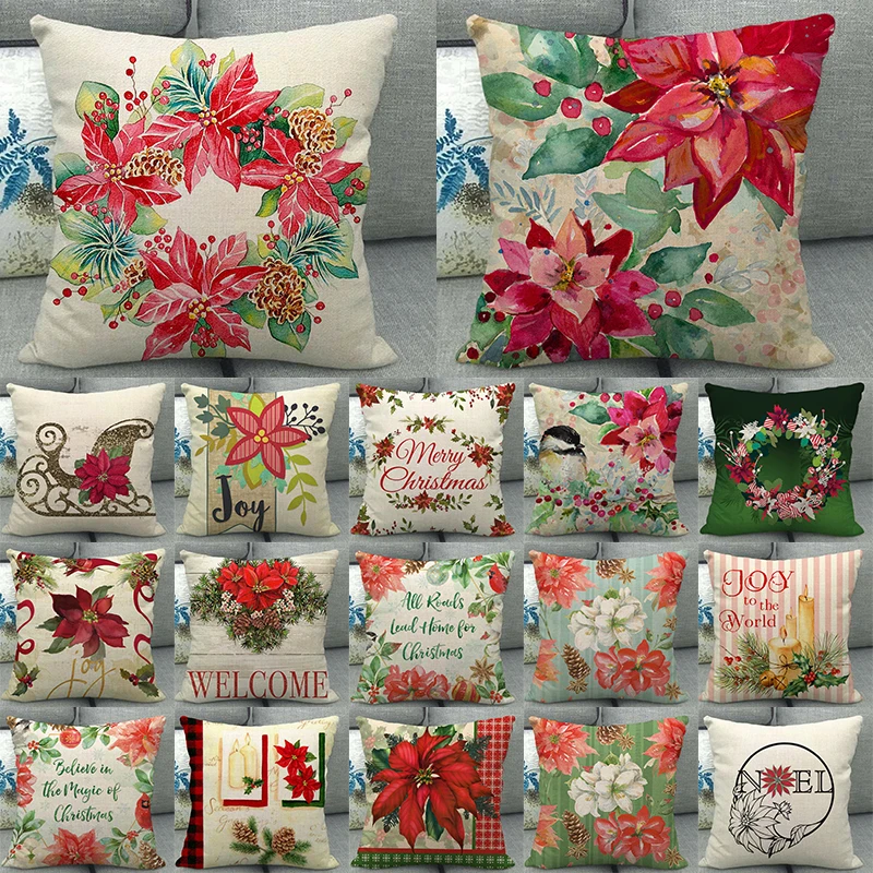 Новогодние и рождественские украшения, наволочки из хлопка и льна с...