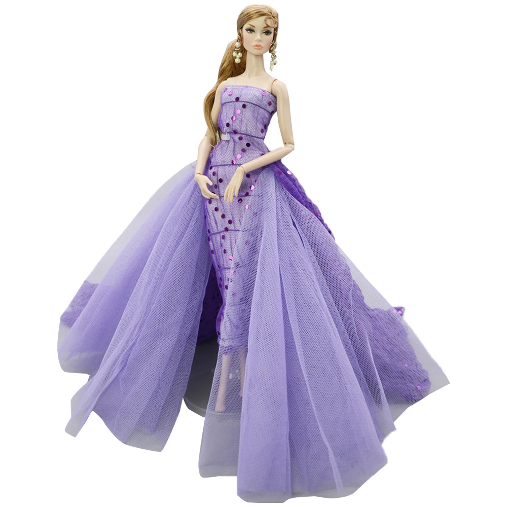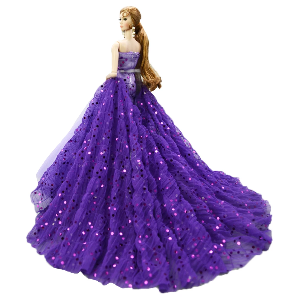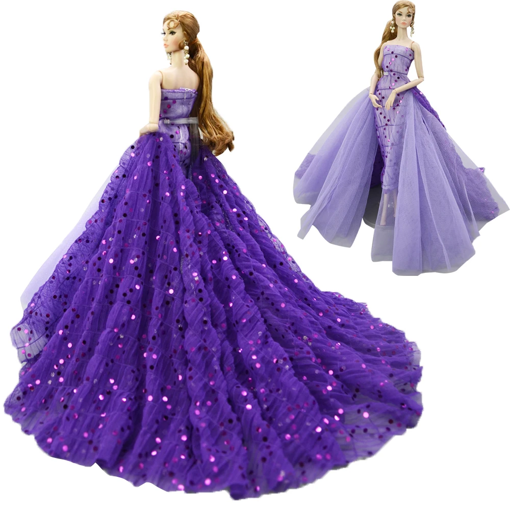 NK Новинка 1 шт. кукла пурпурный блестящий хвост модное платье принцессы благородное свадебное платье для Барби аксессуары кукла подарок для ребенка