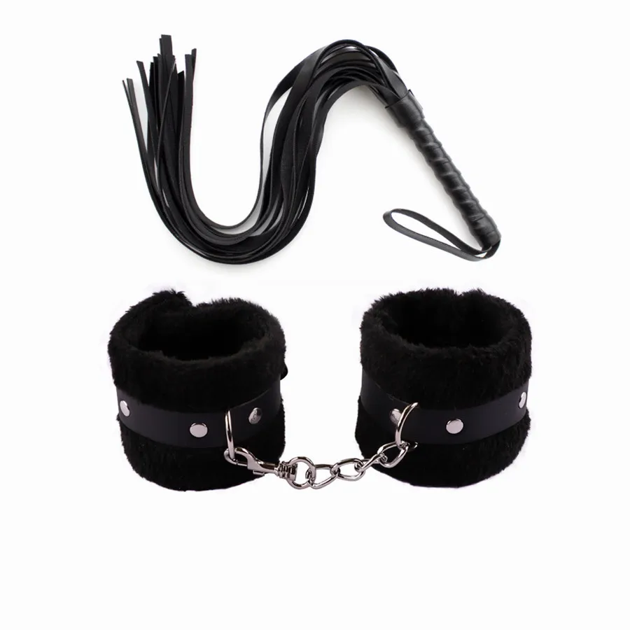 Экзотические сексуальные аксессуары набор сексуальных регулируемых плюшевых наручников для связывания наручники с кнутом для 18 + взрослых фиксаторы для секса
