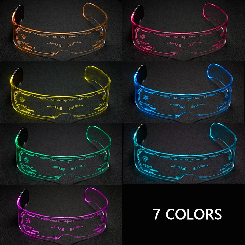Светодиодный ные светящиеся очки, светящиеся очки в стиле киберпанк, Мигающие неоновые очки для вечерние, Рейв светодиодный Декор для диджеев, солнцезащитные очки, Рождественский коридор