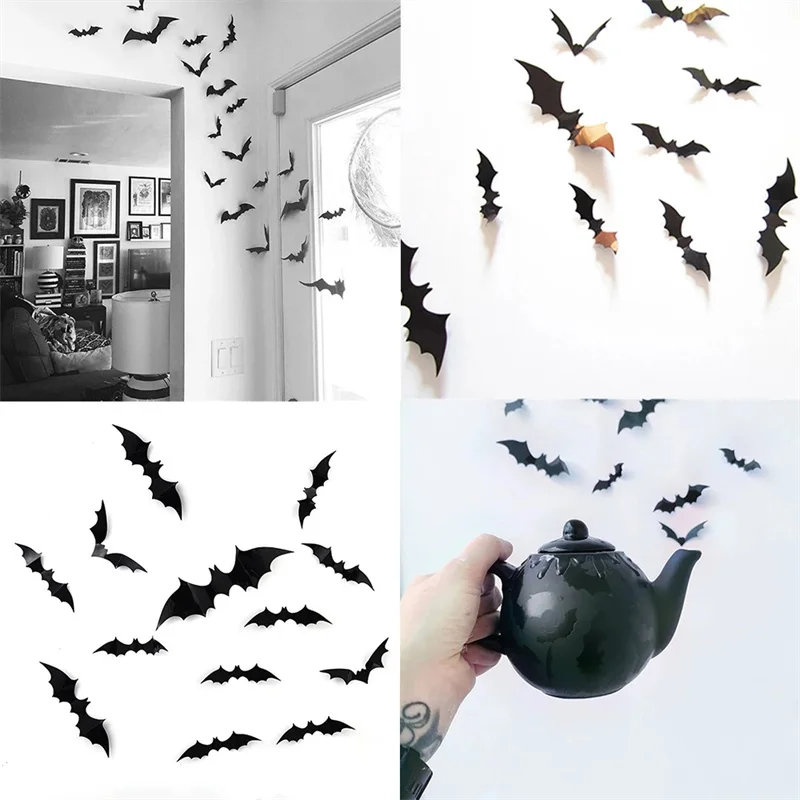 2448 шт. украшения на Хэллоуин 3D черная ПВХ летучая мышь для вечер...