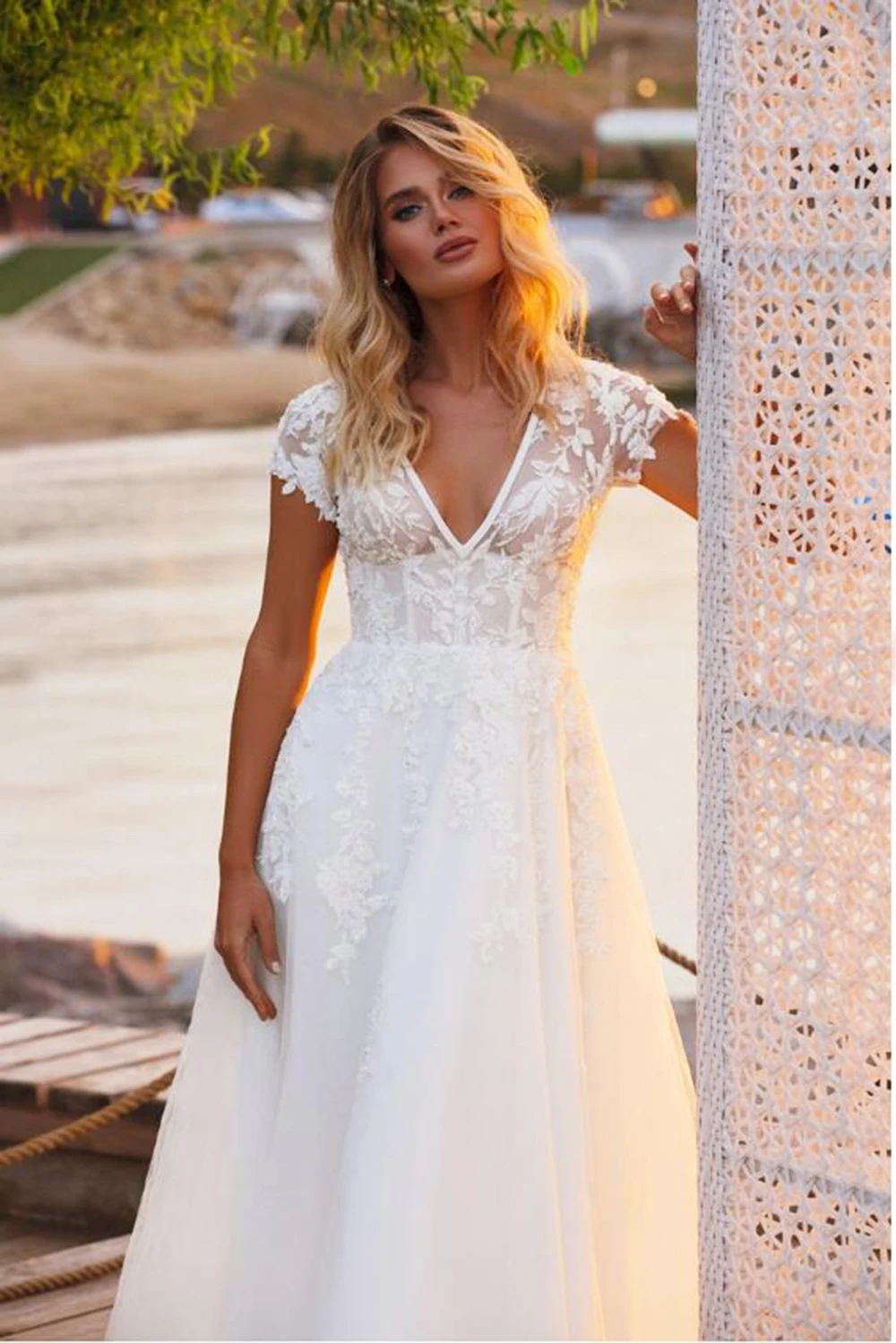 Платье LORIE свадебное с V-образным вырезом, Пляжное фатиновое с от...