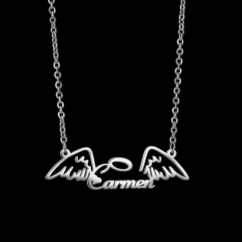 Персонализированное ожерелье с именной табличкой ангельские крылья ...