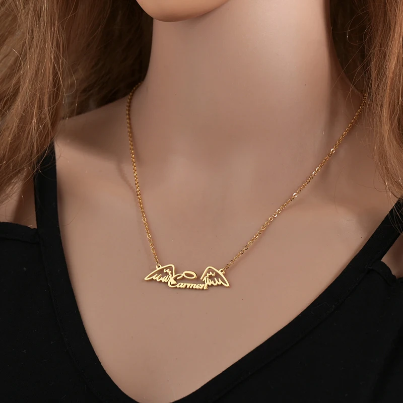 Nextvance индивидуальная именная табличка ожерелье из нержавеющей стали персонализированные Крылья Ангела золотой кулон для женщин подарок на день рождения ювелирные изделия