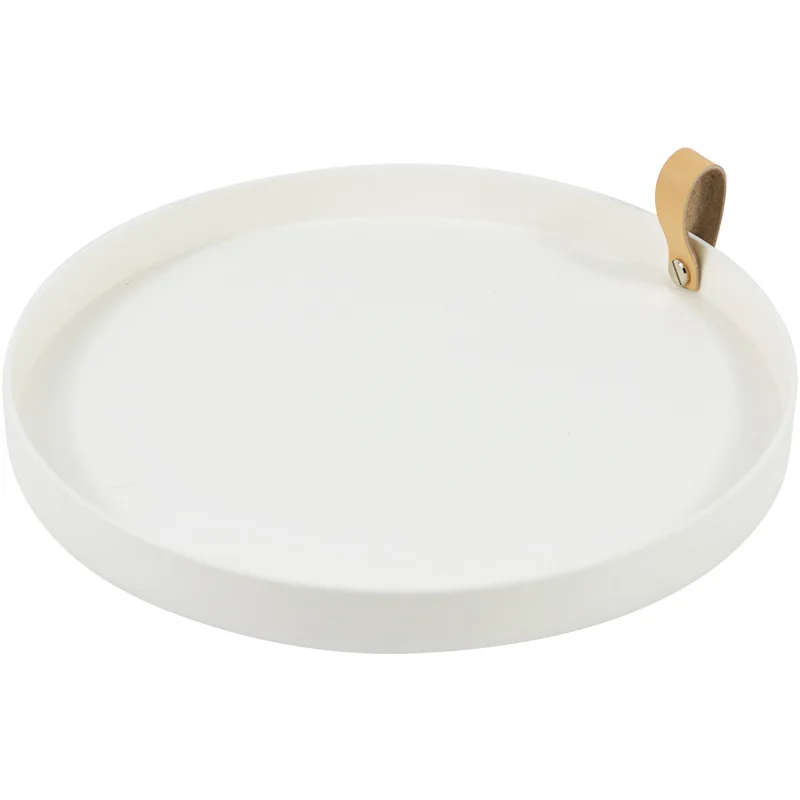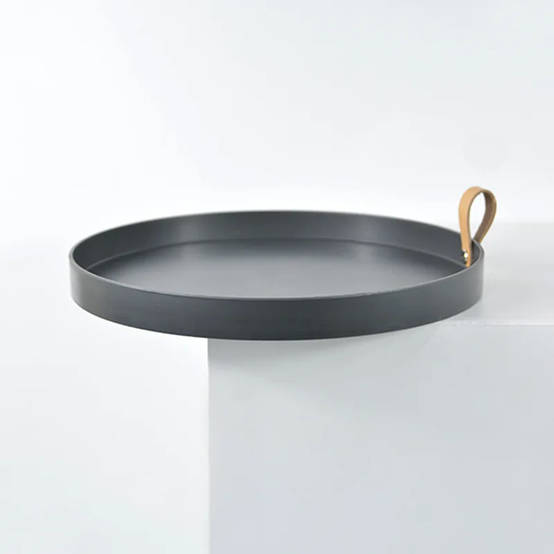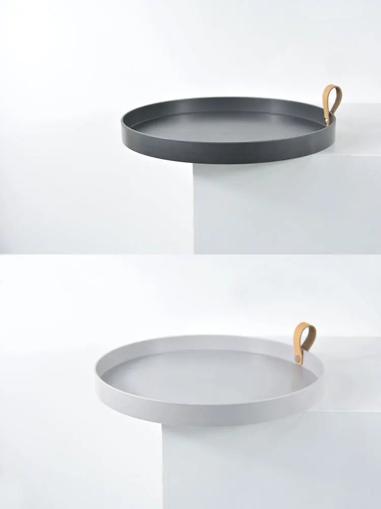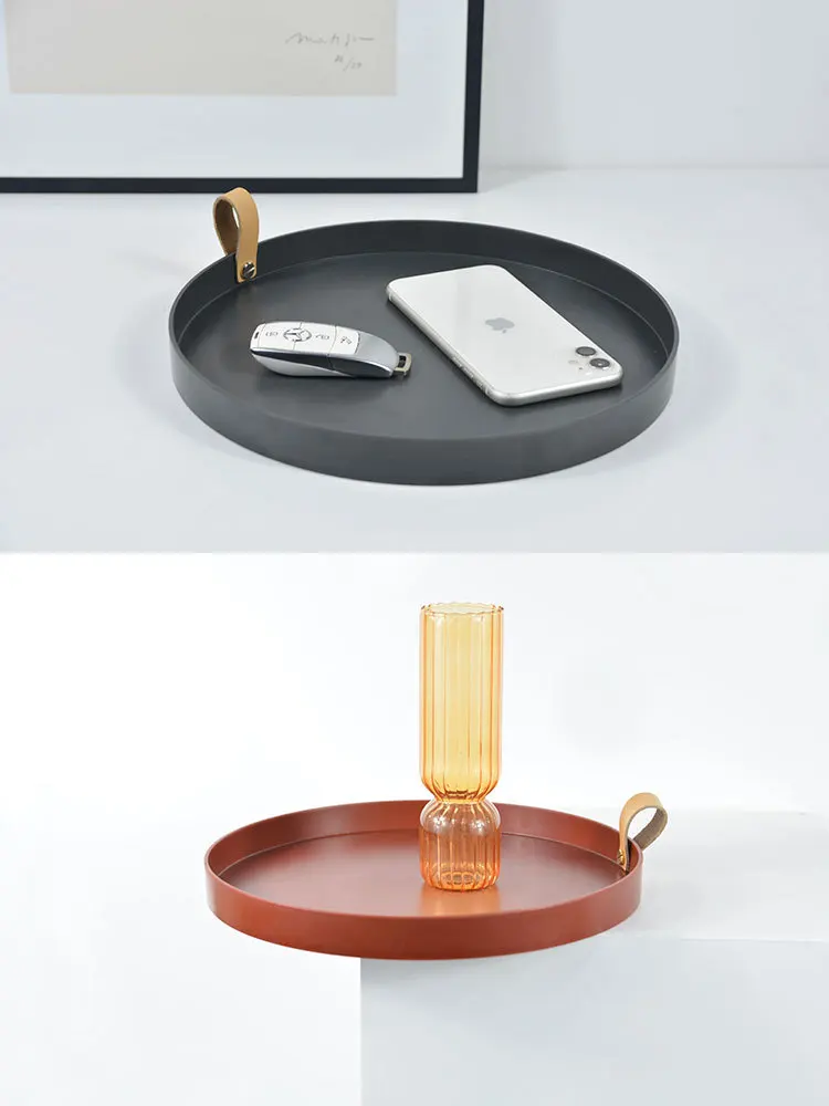 Пластиковый круглый лоток для хранения с кожаной ручкой, настольный...