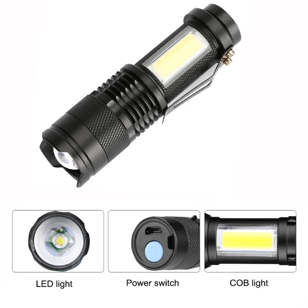Q5 + COB фонарик с мини-зумом USB Перезаряжаемый 3 режима светодиод...