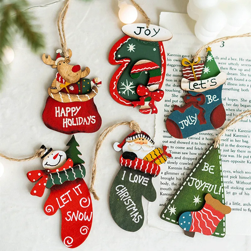 Рождественские деревянные подвески, рождественские украшения для ел...