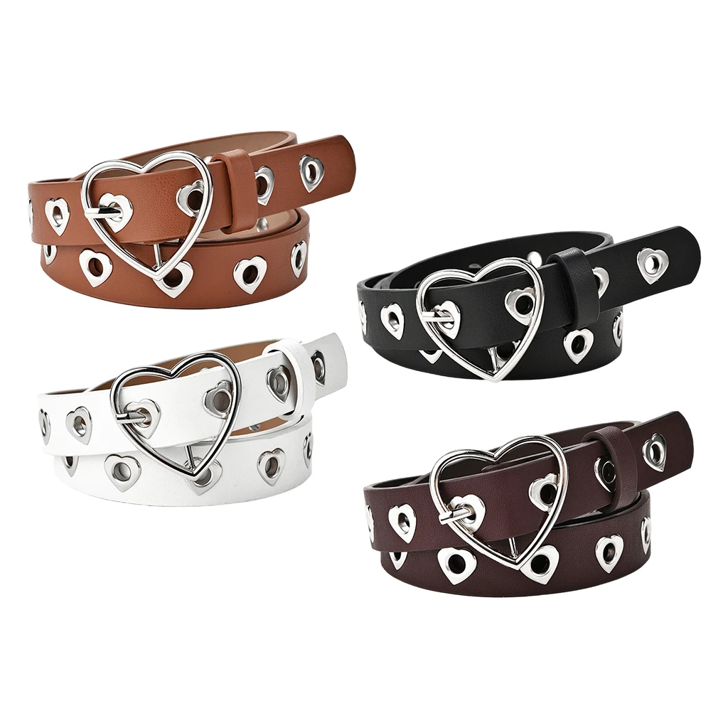 Ремень с двумя кольцами Женский, модный пояс из искусственной кожи с металлической пряжкой с сердечком и булавкой, Дикий Пояс для джинсов