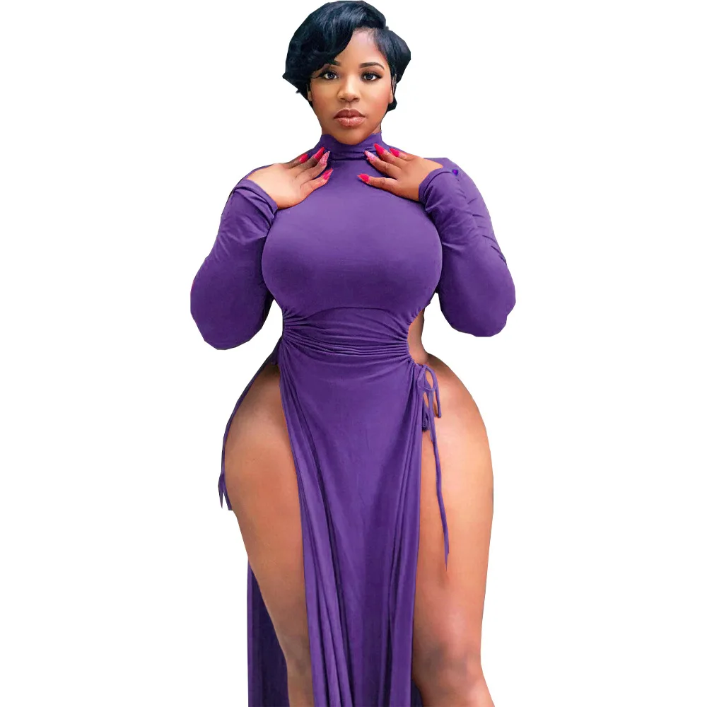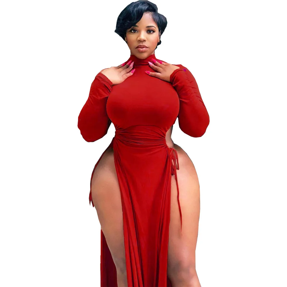 Женское длинное кружевное платье, однотонное Привлекательное элегантное платье с круглым вырезом и длинным рукавом, 4XL, 5XL