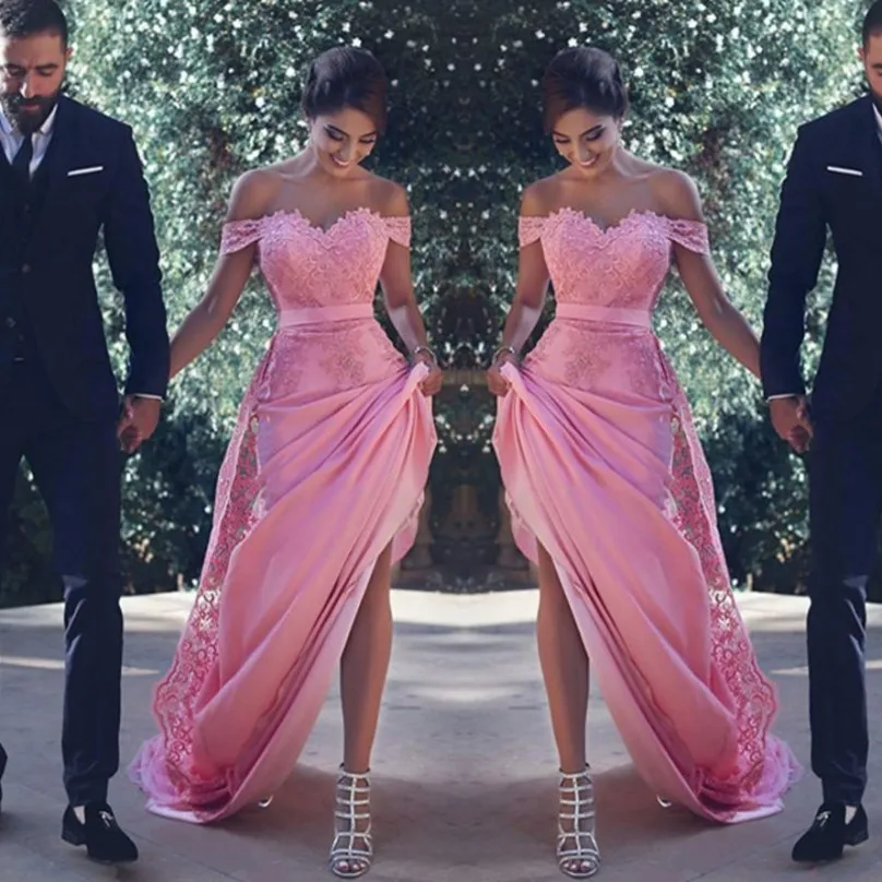 Вечернее Бальное Платье, розовое, с открытым плечом, из тюля, 2020