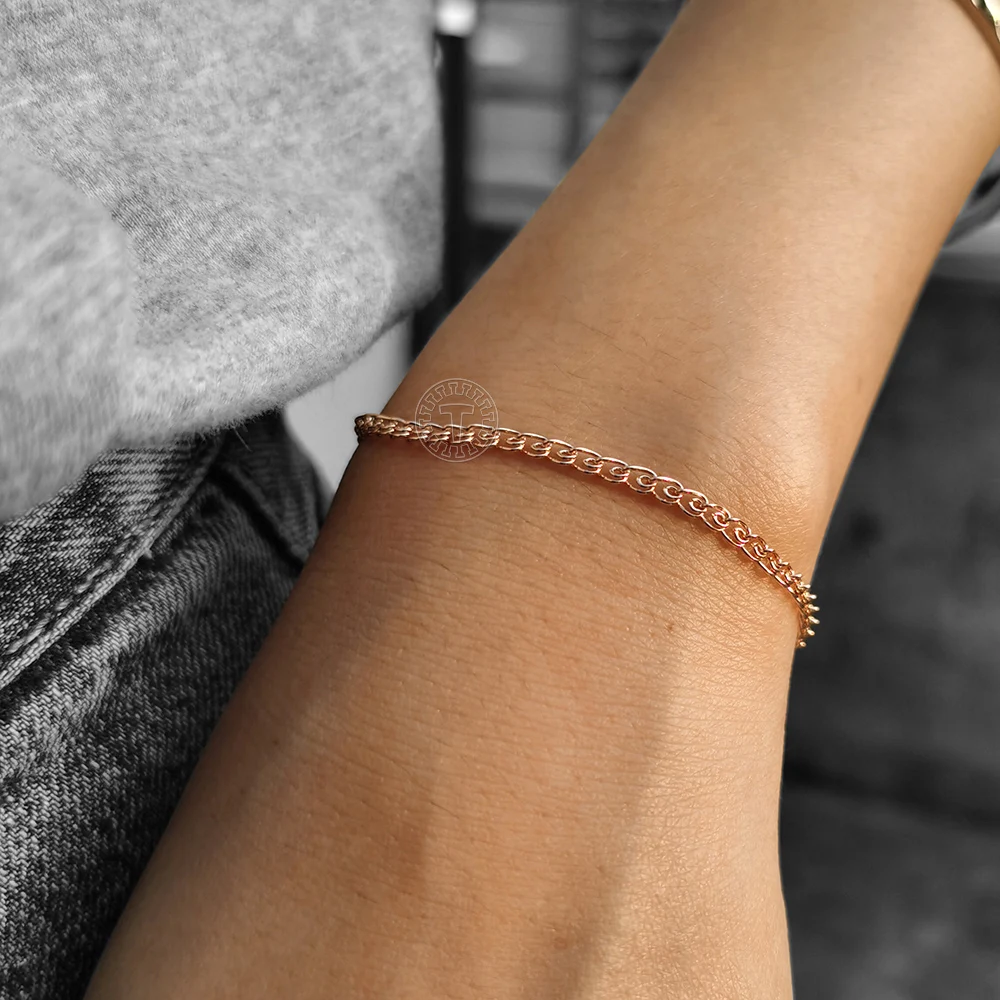 Браслет-цепочка женский из розового золота 585 пробы, 2 мм, 20 см