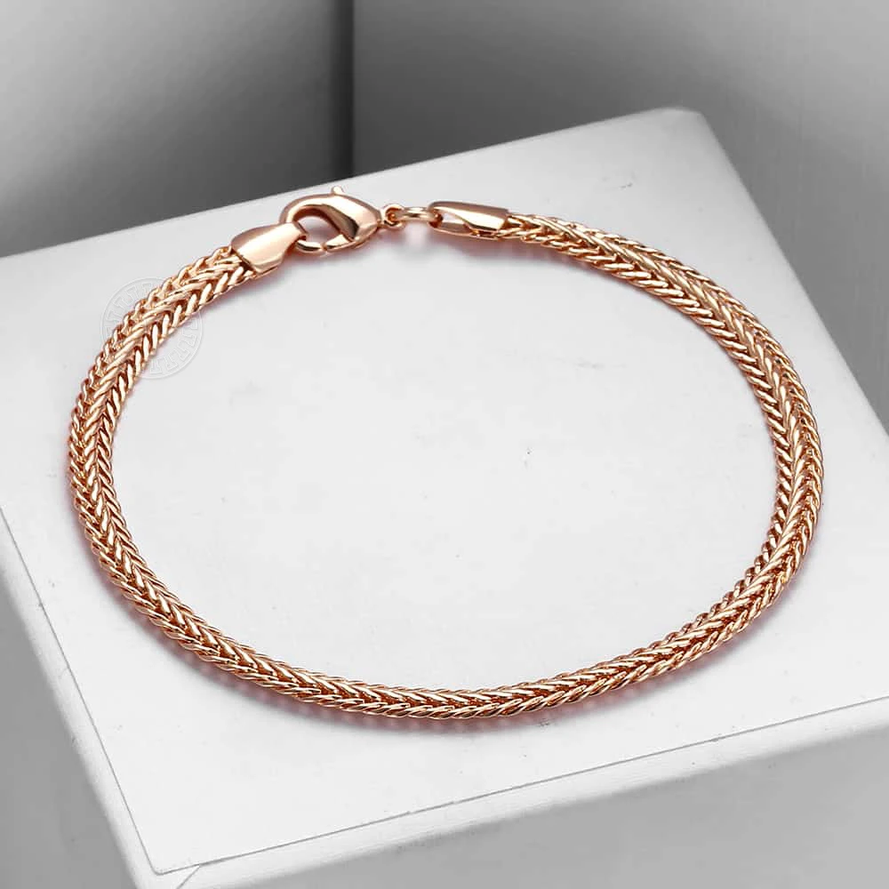Плетеный женский браслет из розового золота 585 пробы, 4 мм, CB01