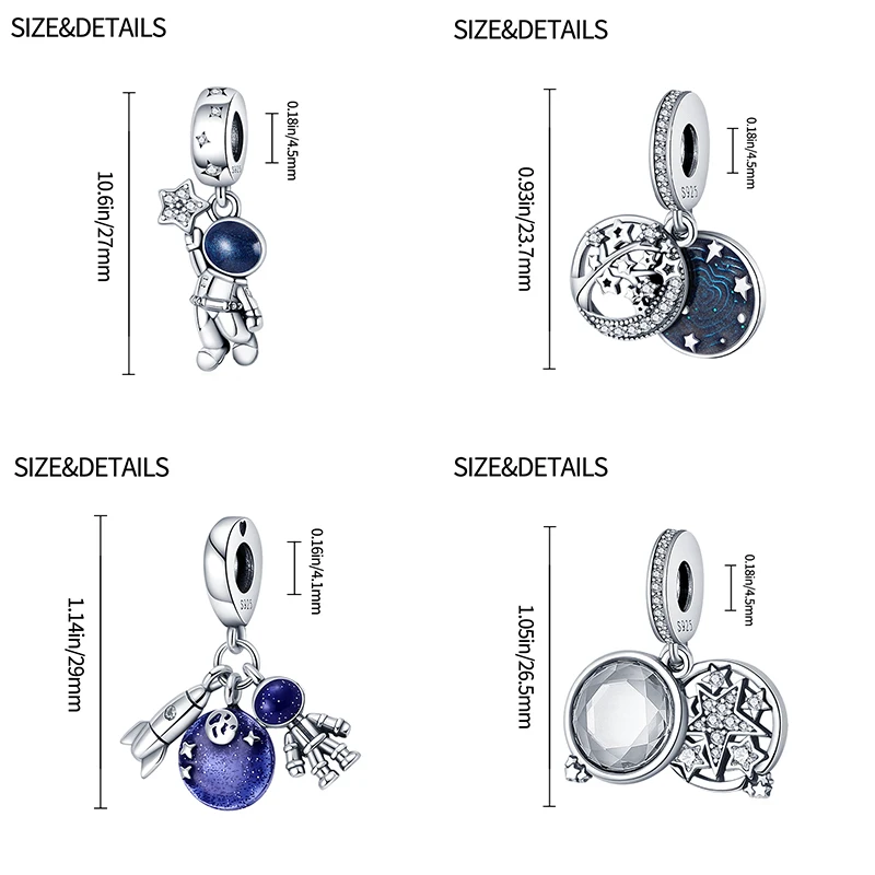 Женский кулон из серебра 925 пробы, с бусинами-шармами