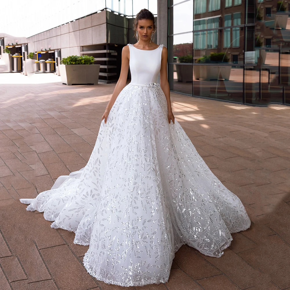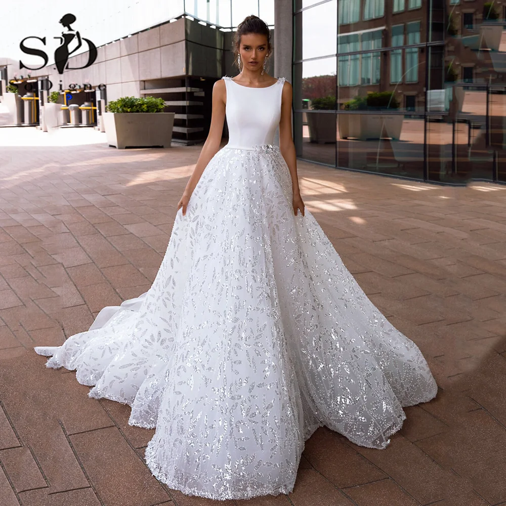 Блестящее свадебное платье с блестками soworthy, блестящее Тюлевое платье с глубоким круглым вырезом и поясом, женское платье для свадебной вечеринки, 2022