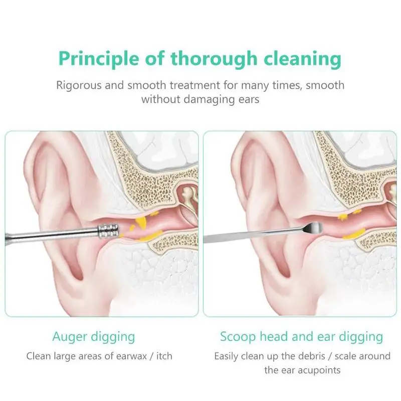 Инновационный набор для чистки ушного воска является инновационным инструментом для чистки ушей, безопасным и безболезненным. Он изготовлен из высококачественной нержавеющей стали и специально разработан для безопасного и удобного извлечения лишнего воска.Он может предотвратить повреждение барабанов уха и повреждение слуха. Имеет спиральный наконечник канавки, который может достигать идеального расстояния от уха и эффективно удалять ушной воск.Примечания: