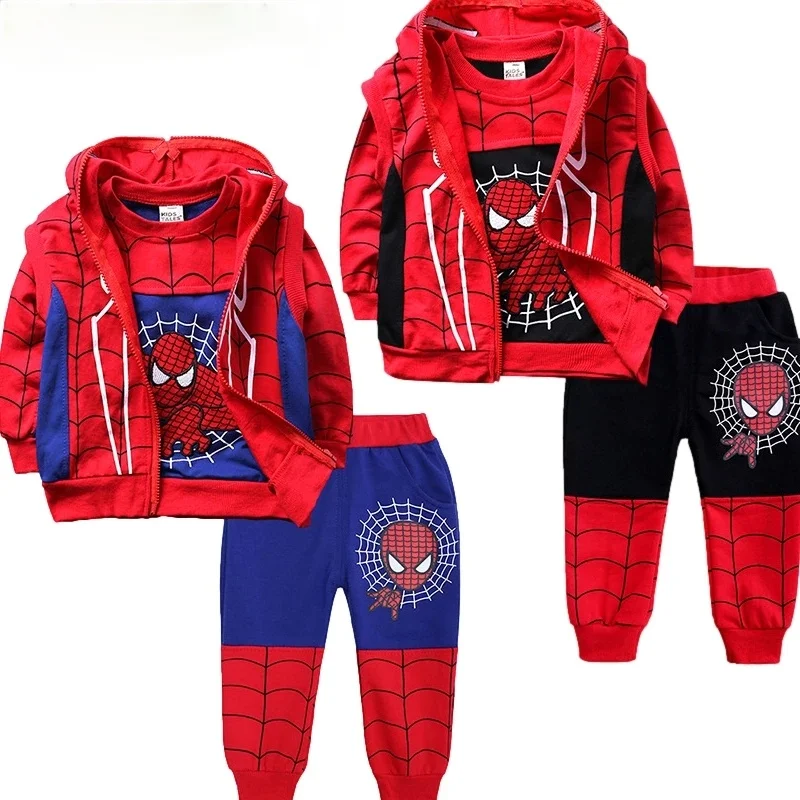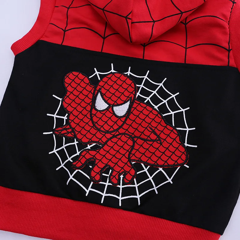 Детская одежда для мальчиков, мультяшный Человек-паук, пальто с капюшоном без рукавов + футболка + брюки, 3 шт.компл., Детские наряды, спортивный костюм для малышей
