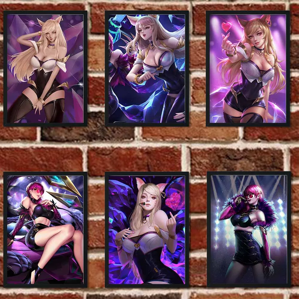 Новейшая кожа KDA Sexi Girl, конкурентоспособная игра, Лига искусственных украшений, художественный Декор, живопись, домашний декор, холст, плакат
