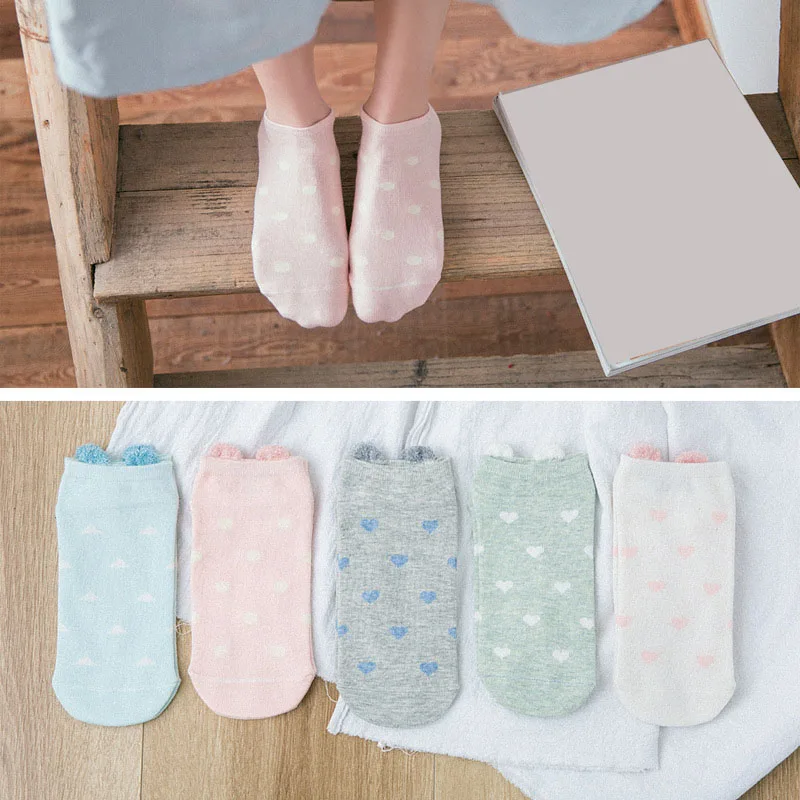 Носки женские хлопковые с рисунком красного сердца, 5 пар