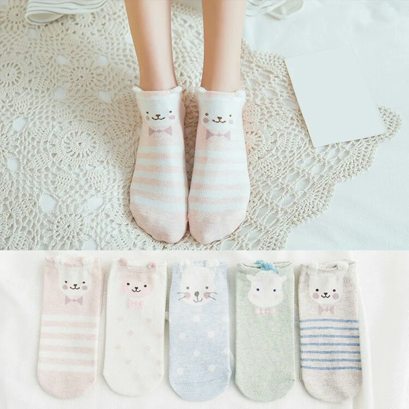5 Pair Socks Women ColorWhite Blue Black etc 9 style Color Socks