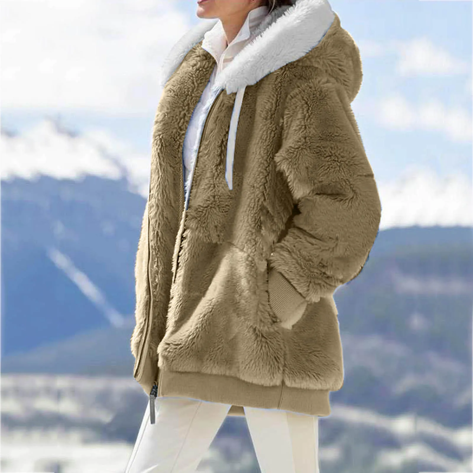 Женские плюшевые флисовые куртки с капюшоном, плюшевая парка с прос...