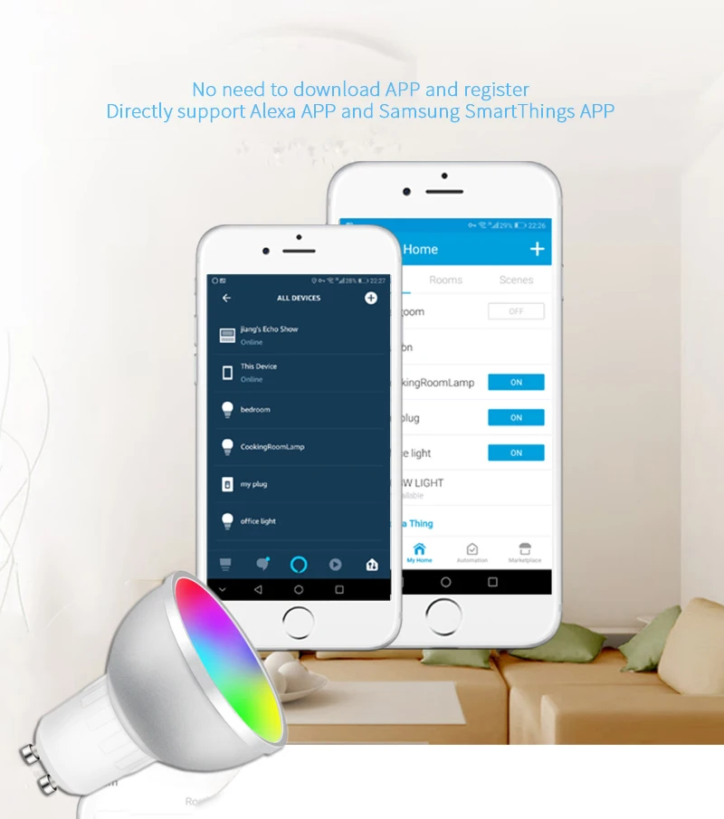 Наши умные светодиодные лампы совместимы с Alexa Echo / Google Home через SmartThings hub или Tuya Zigbee hub. -Работа с приложением Tuya/управлением приложением SmartThings.