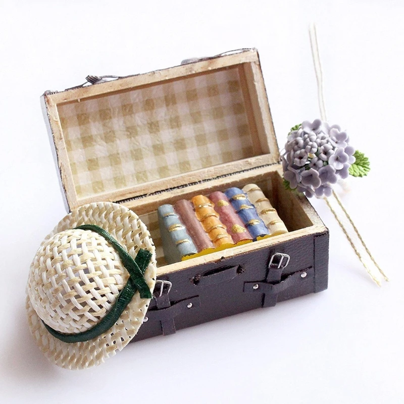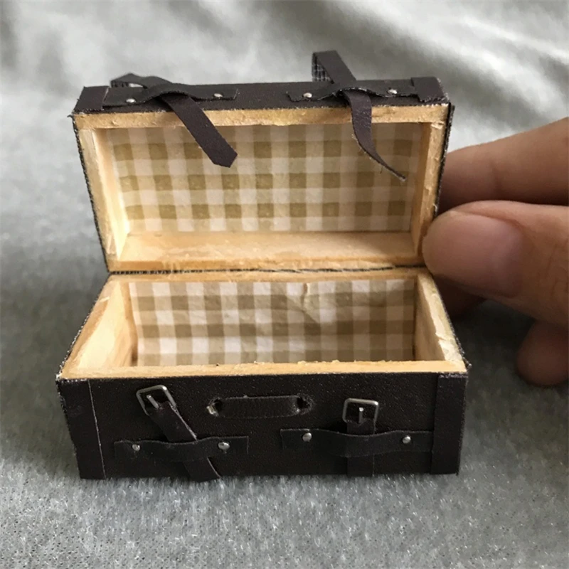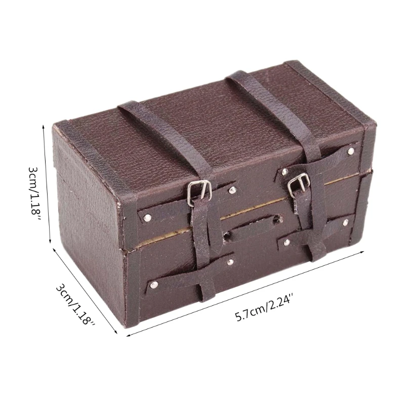 Деревянный чемодан для кукольного домика кофейного цвета в масштабе 112, классические игрушки, аксессуары для мебели, миниатюрная переноска, винтажная кожа