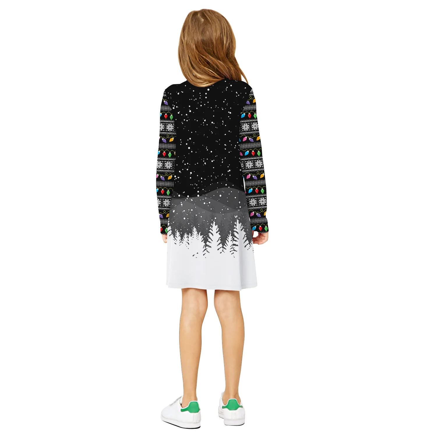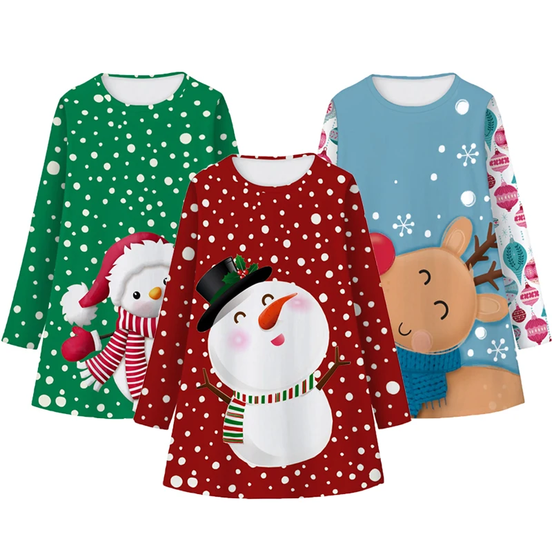 Рождественское платье большого размера для девочки, осенняя милая детская одежда с мультяшным единорогом и снегом для детей 6-12 лет, Детская домашняя праздничная одежда