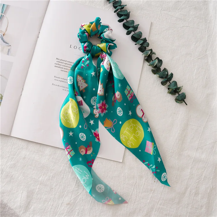 Резинка для волос Женская атласная с бантом, с рождественским принтом