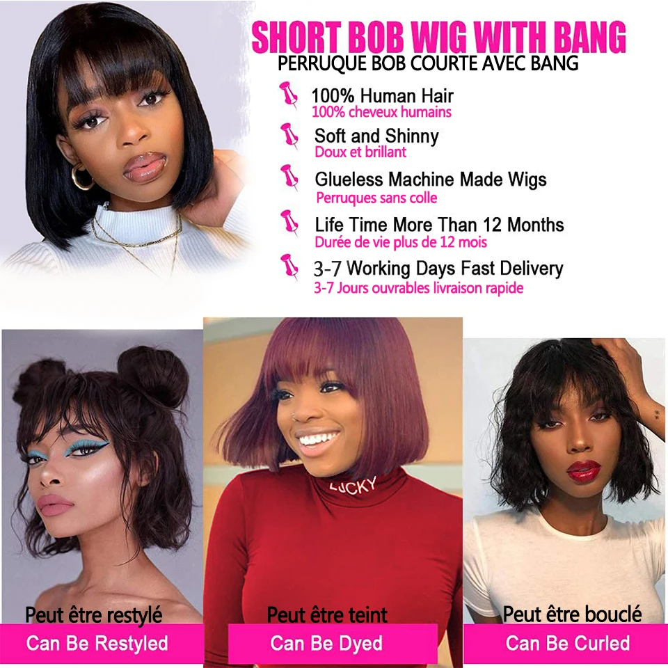 Короткие прямые парики боб Vanlov с челкой, бразильские парики из натуральных волос для женщин, парики боб, парики из натуральных волос без клея