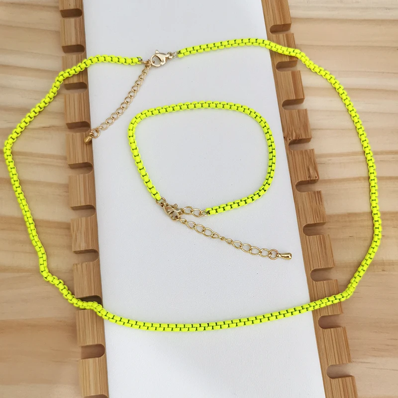 QMHJE 3 мм Ожерелье карамельного цвета цепочка браслет на ногу Сделай Сам базовый женский чокер ссылка неоновый зеленый желтый ювелирные изделия аксессуары Богемия