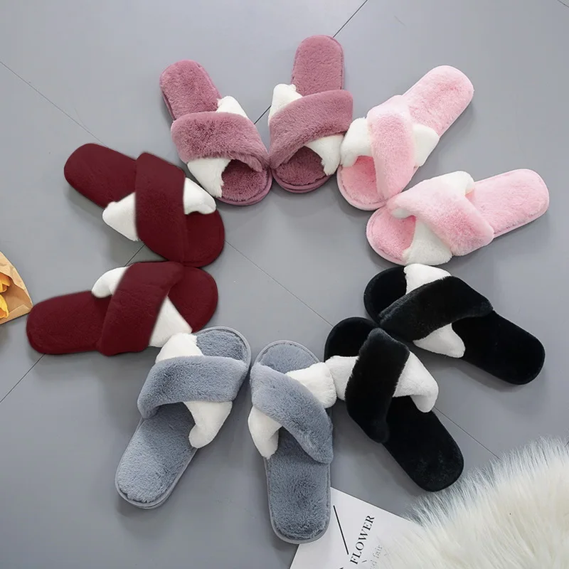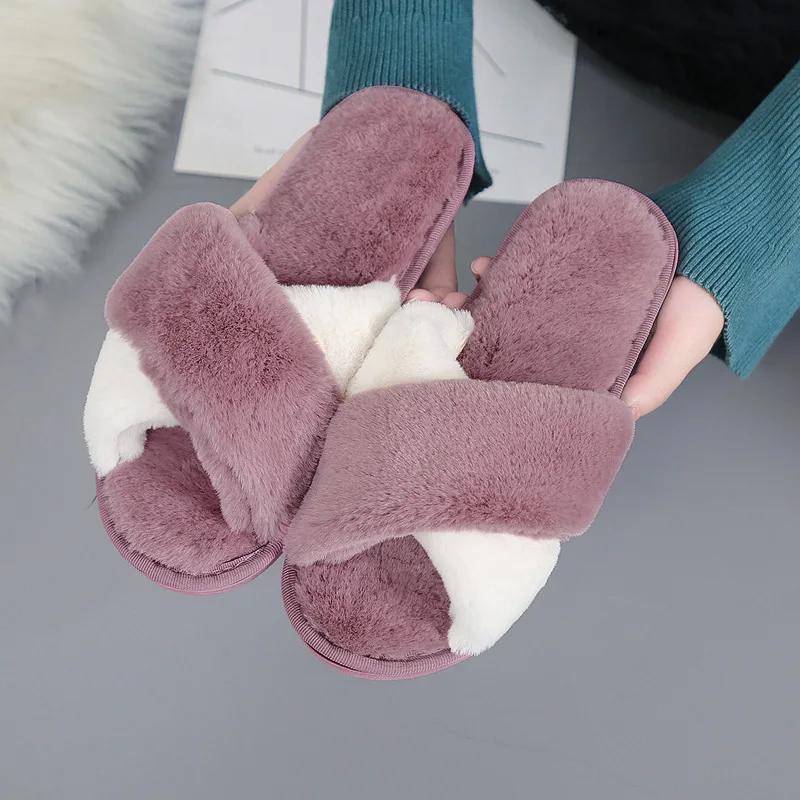 Теплые пушистые шлепанцы для женщин, искусственный мех, перекрестны...