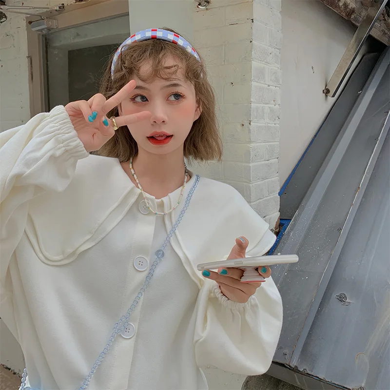 Новинка 2021, модная женская белая блузка, милая рубашка в Корейском стиле с воротником Питер Пэн, элегантная винтажная рубашка с длинным рукавом, топы на осень
